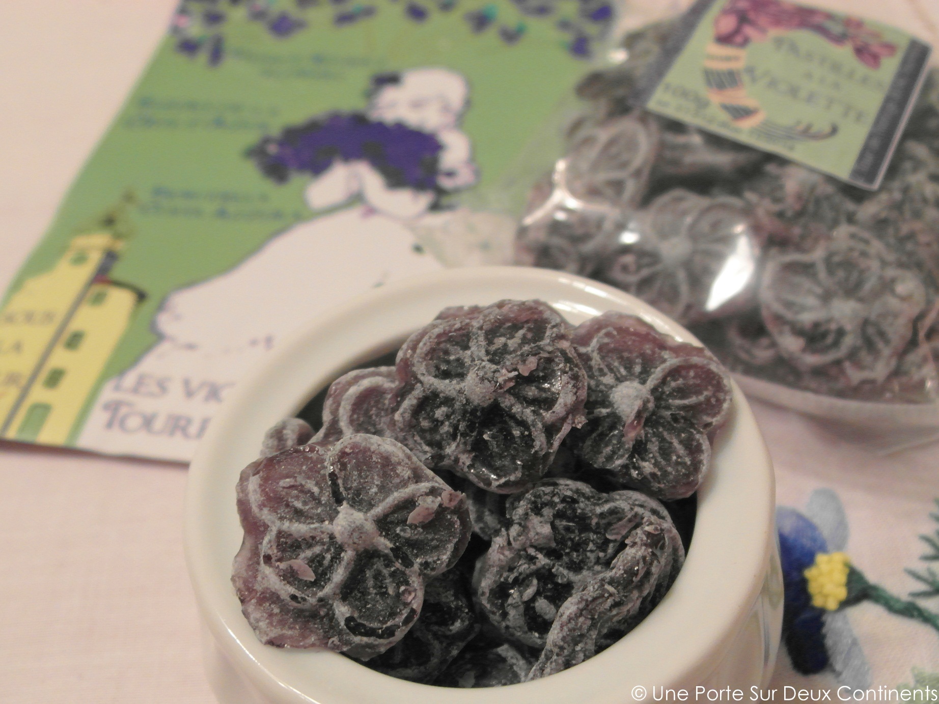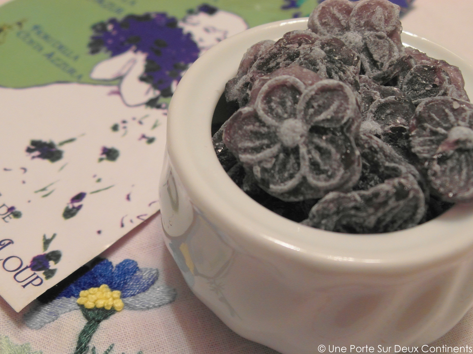 La violette est très prisée en confiserie comme en parfumerie et si sa fragrance est très agréable, son goût doux et sucré est aussi délicieux en bonbons. Les miens viennent de la boutique “Engrenage”, située sous la tour de l’horloge de la cité médiévale que j’aimerais bien visiter un jour.