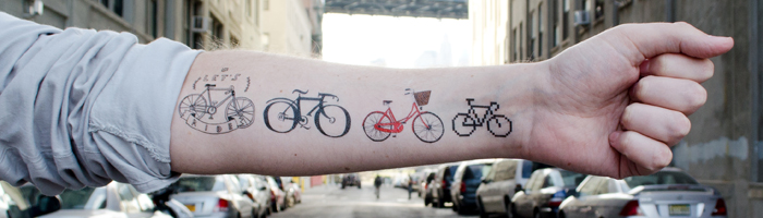 J’adore l’idée du tatouage, mais je n’ai jamais trouvé “le mien” et je crois que je suis trop vieille pour m’y mettre. Alors pourquoi pas un gracieux petit biclou ou une petite maison comme le font les enfants ou un “book lover”??