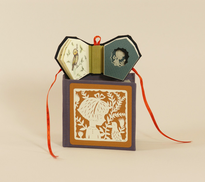 Du papier découpé pour former un bijou onirique ou un livre miniature plein de poésie et de délicatesse. Avec ses doigts de fée, Elsa Mora manie merveilleusement bien sa paire de ciseaux pour nous présenter une œuvre riche et variée, complexe et fantaisiste où chaque détail a été bien pensé.