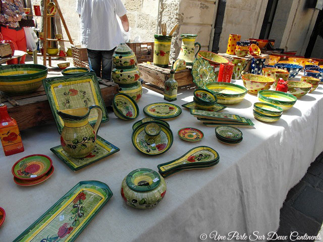 Un vrai marché provençal comme on les aime!(j’adore le stand de céramique, ça a l’air vraiment gai et coloré)