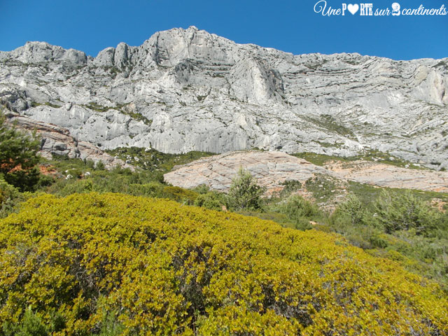 Quel majestueux spectacle de longer les routes au cœur de la garrigue provençale pour découvrir la montagne Sainte-Victoire, posée là sous un ciel bleu comme un paquebot prêt à partir vers des mers lointaines.