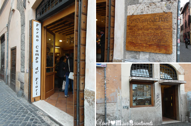 Très animé, ce marché est aussi entouré de cafés et restaurants et d’une fameuse boulangerie/pâtisserie, le Forno Campo de’ Fiori, une adresse connue des Romains qui ne désemplit pas dans ses deux locaux qui s’opposent. Je recommande les sandwichs à la mortadelle que j’ai trouvé délicieux, mais bien d’autres gourmandises alléchantes que je n’ai pas eu la chance de goûter comme les pizzas, tartes, pains aux olives et biscuits. Très pratique quand on a envie de se restaurer sans perdre du temps dans notre itinéraire !