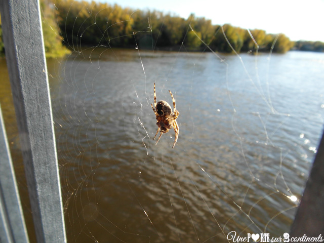 Sur la longue balustrade séparant les deux îles, quelques araignées ont décidé elles aussi de profiter de la belle vue sur la rivière…