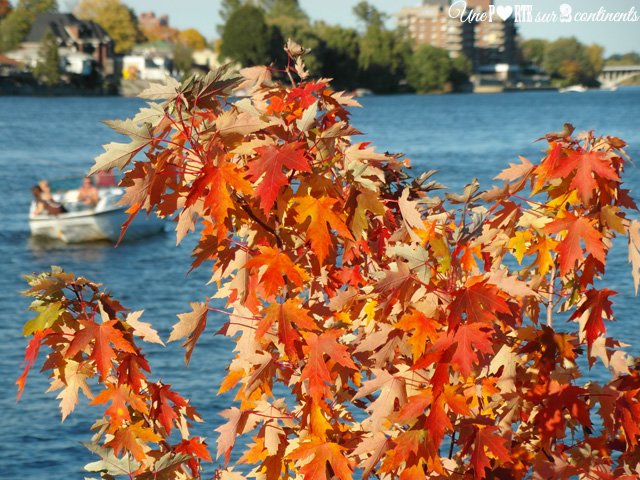 Je ne sais pas pourquoi mais l’automne me renvoie automatiquement des images du Canada (ciel bleu, feuilles de platanes rouge-orangés, grande étendue d’eau, …).