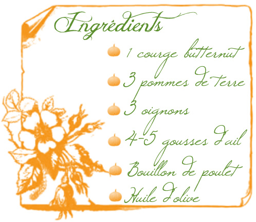 Là, je vais tester aujourd’hui justement, la soupe à la citrouille, mais je crois qu’elle ne sera pas aussi onctueuse que la butternut….