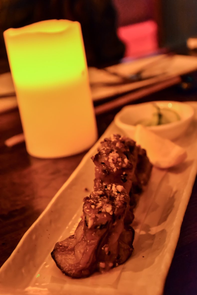 Derrière cette aventure, Scott Hallsworth, l’ancien chef de Nobu Park Lane, propose un menu assez déjanté allant de pair avec la coolitude des lieux. Par un dimanche soir, j’ai poussé la porte de cette adresse branchée de Chelsea, curieuse de tester cette cuisine plutôt excitante. Beaucoup de bruit, beaucoup de monde, mais je dois dire que cette frénésie dans l’air est assez contagieuse. La déco japonisante et la lumière tamisée y sont pour beaucoup, tout comme le bar ouvert très achalandé. Par moment, on oublie même qu’on est à Londres, tellement les lieux nous transportent dans un autre univers.