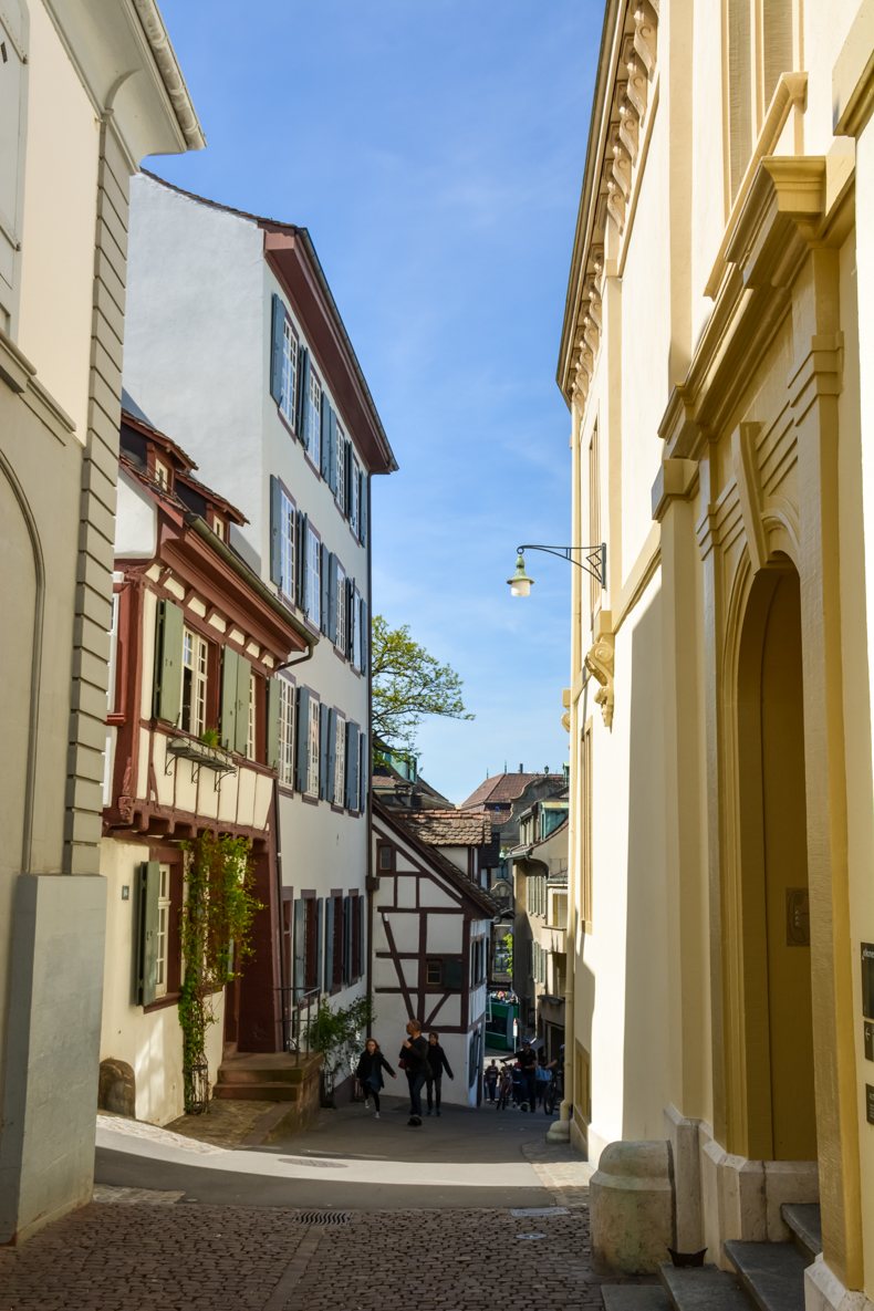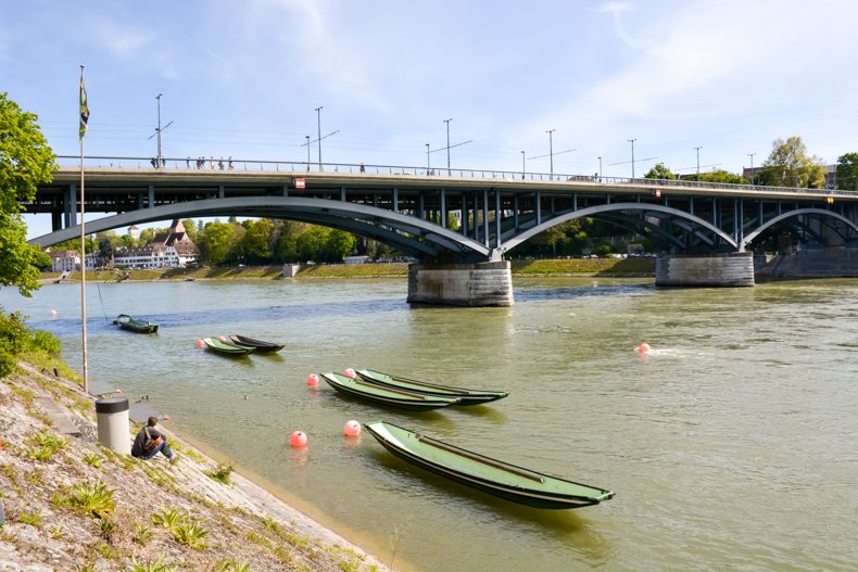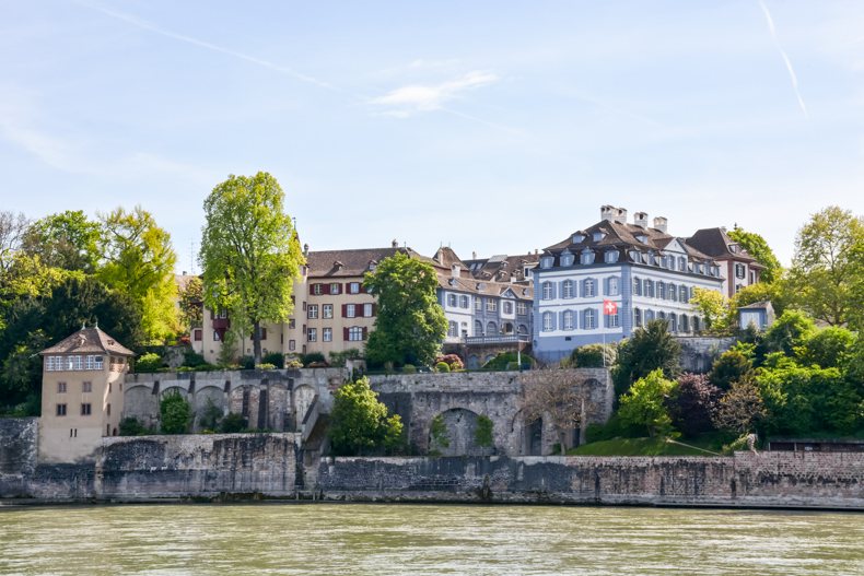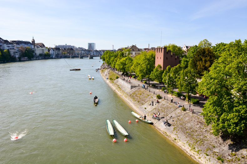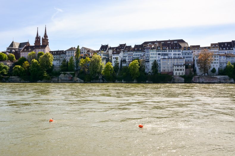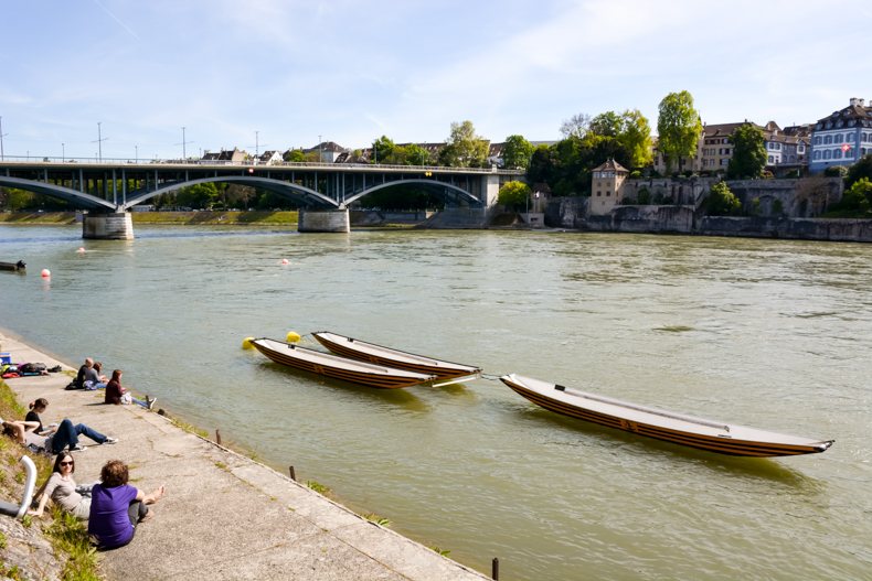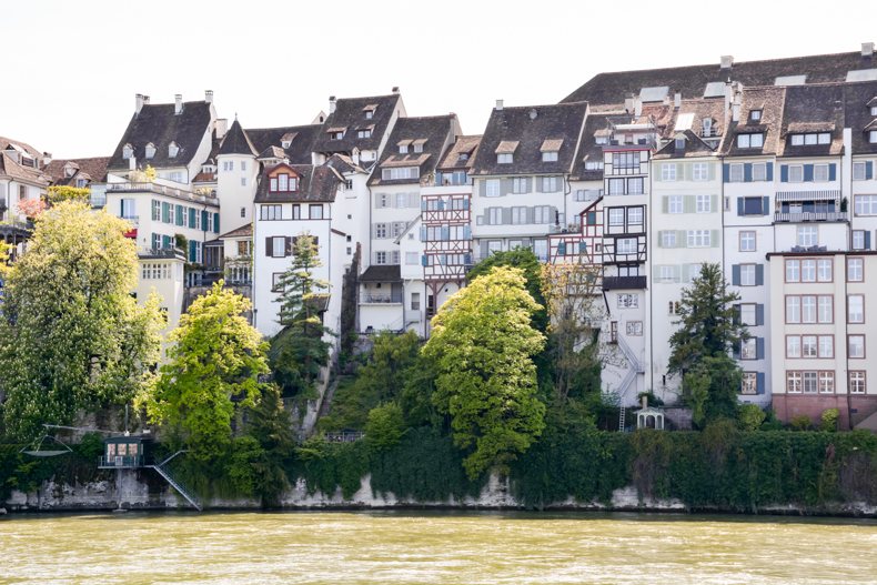 À Bâle, s’il y a un lieu qui incite à la détente, c’est bien le Rhin et ses berges. Je l’ai traversé instinctivement, suivant le flot des passants tous attirés comme moi par la jolie promenade le long du fleuve. Lieu de loisirs et de vie, les Bâlois s’y réunissent pour flâner, se désaltérer à l’une des buvettes et même nager lors des beaux jours. Si la vue sur la vieille ville est magnifique depuis la rive, les bâtiments qui s’y trouvent sont aussi particulièrement charmants avec leurs volets colorés, jolies portes et plantes grimpantes. Pour rejoindre l’autre côté, 4 bacs pour passagers font la navette sans moteur avec comme seul équipement un câble en acier et le courant de l’eau. Une belle tradition préservée.