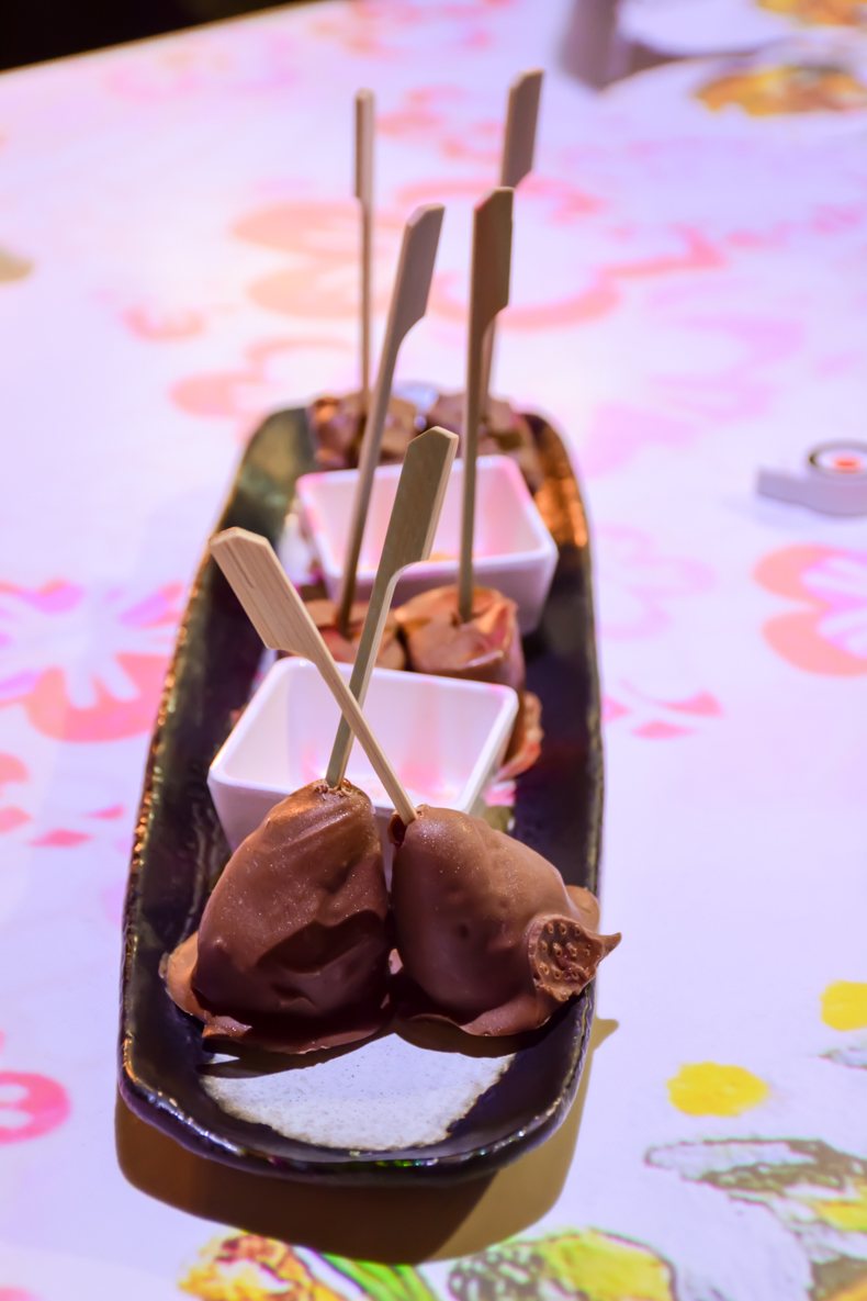 Même le dessert visait dans le mile. J’ai opté pour les bâtonnets façon pop cake au chocolat, fraises, brownie et guimauve, tous nappés de chocolat, pour conclure sur une note fun à l’image de l’ensemble du repas.