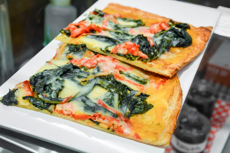 Le tout peut être dégusté sur place puisque la boulangerie dispose d’une quarantaine de places assises entre son long comptoir placé devant la fenêtre, ses tables communes et son banc d’église qui contribue indéniablement à la chaleur et au cachet du lieu.