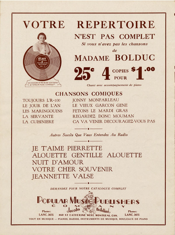 “Reine des chanteurs folkloriques canadiens”, La Bolduc a marqué les années 1930 avec ses chansons à répondre réconfortantes et humoristiques à une époque où les Québécois traversaient une grave crise économique. Musicienne autodidacte, elle a été la voix de tout un peuple qui s’est reconnu en elle.
